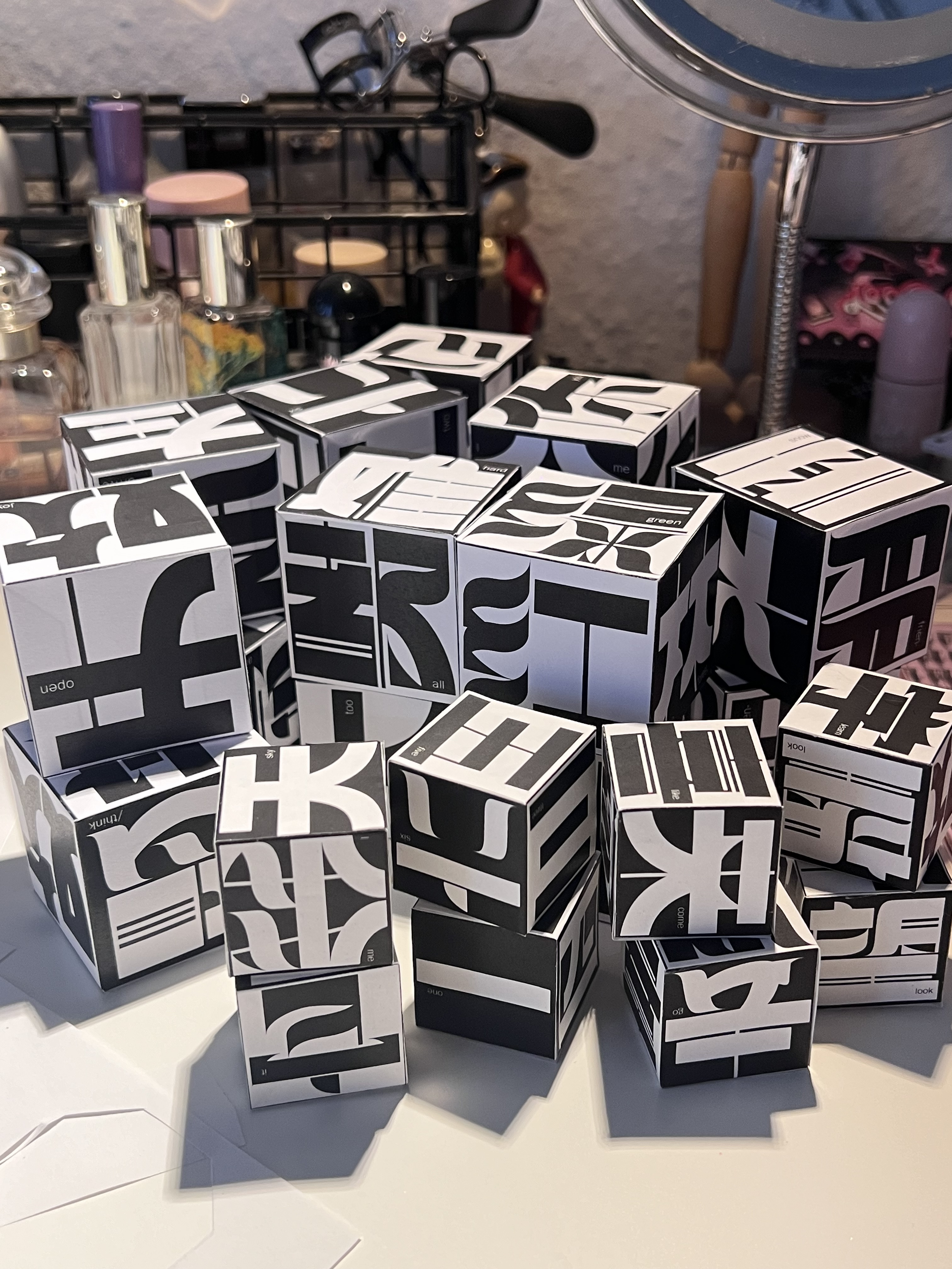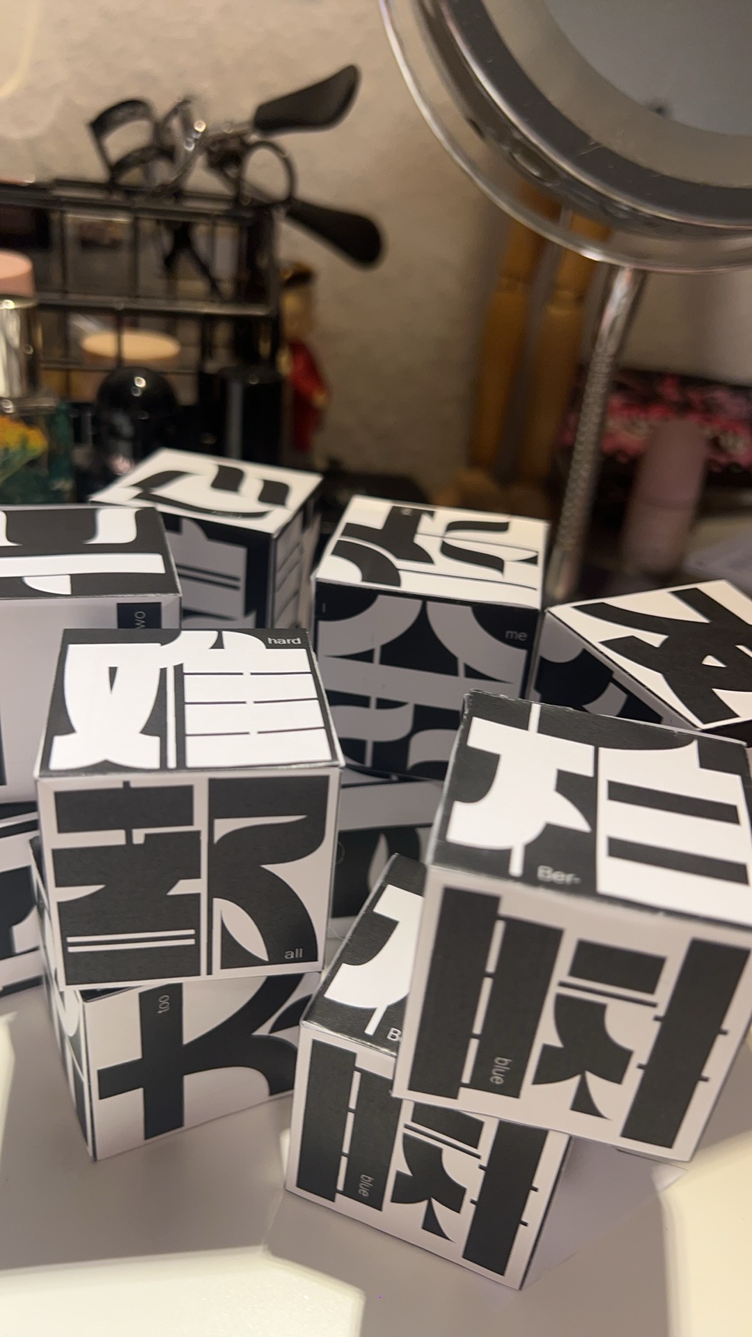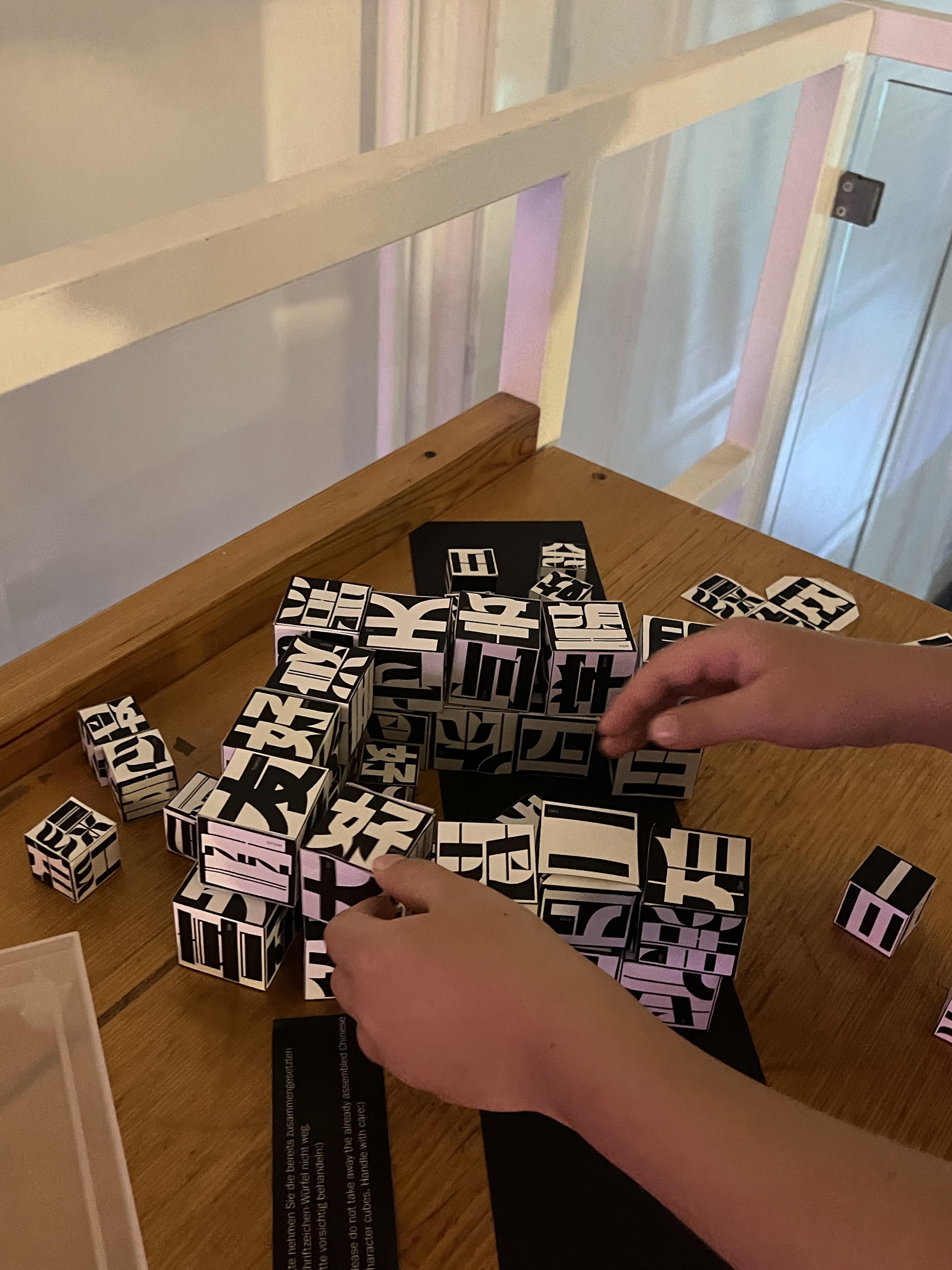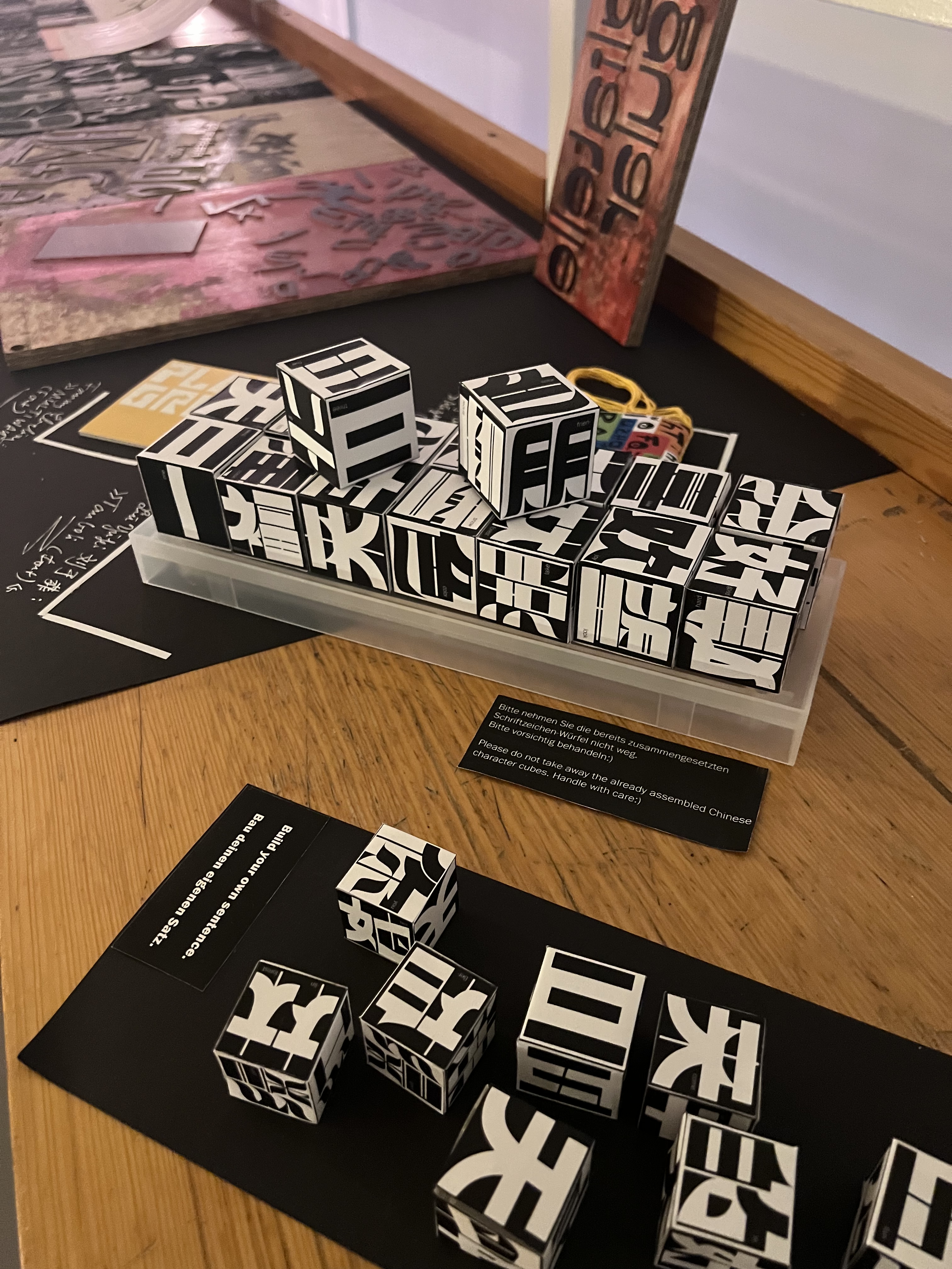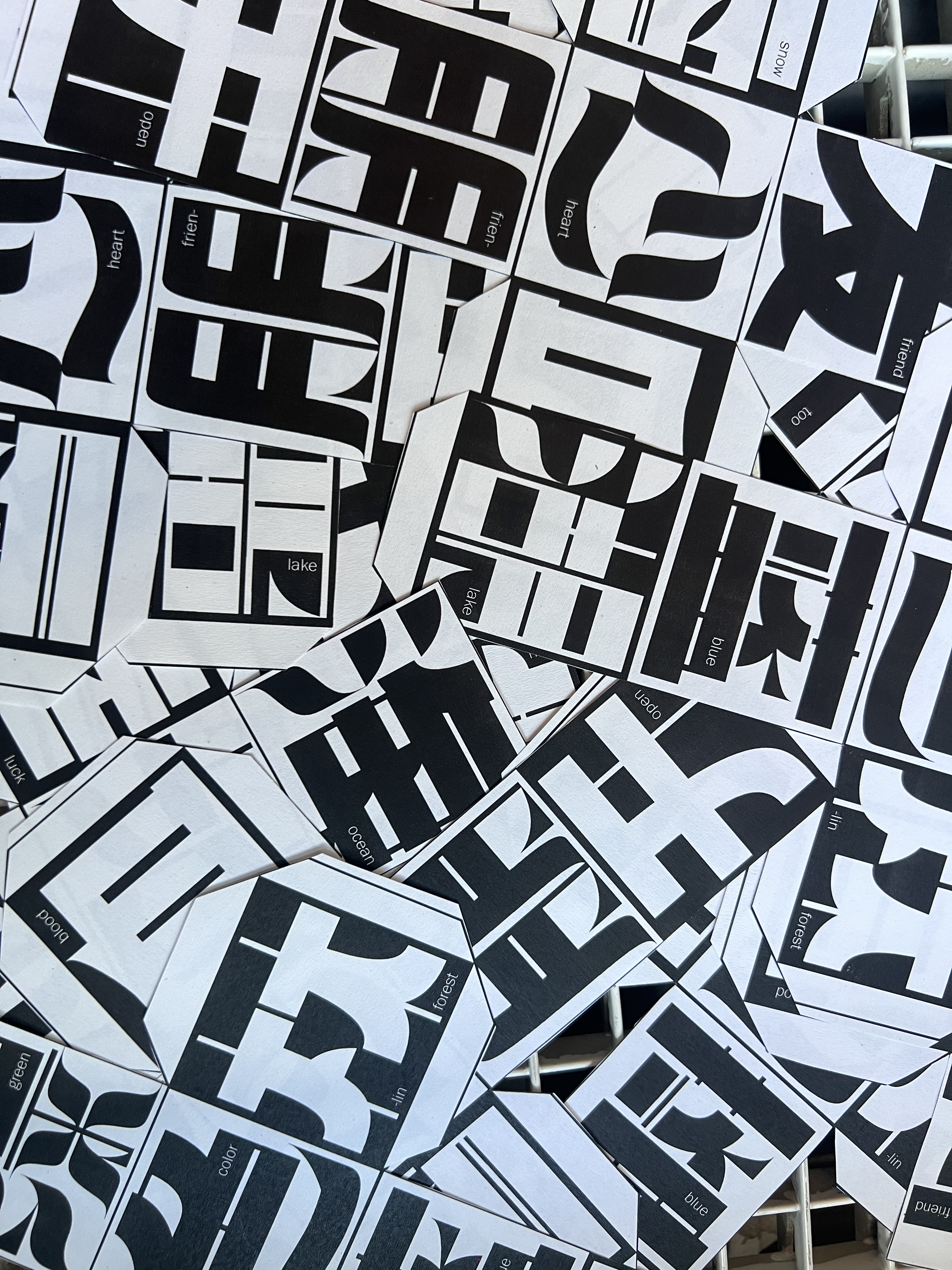 Diese Schrift basiert auf rechteckigen und modifizierten geometrischen Formen und erzeugt ein starkes geometrisches Gefühl, das die traditionellen Schwünge und Betonungen der chinesischen Kalligraphie abschwächt und neue Möglichkeiten für das Schreiben chinesischer Schriftzeichen erkundet. Jedes Zeichen ist wie ein Baustein, der durch Zusammenfügen eine einzigartige visuelle Wirkung entfaltet.